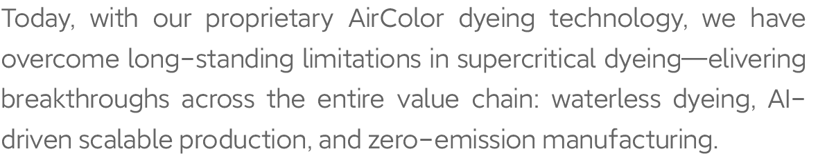 We use supercritical CO2 fluid as the dyeing medium—no water is used throughout the process, resulting in zero wastewater discharge.